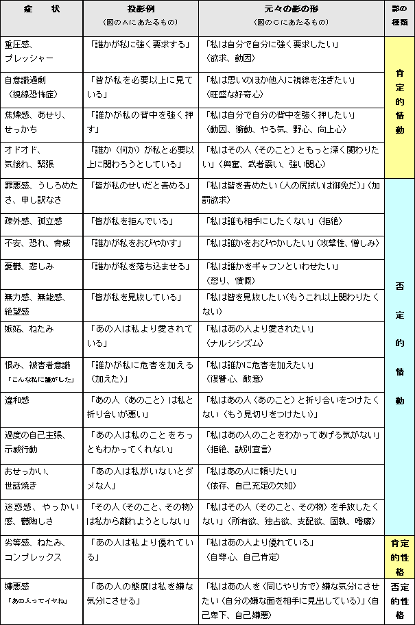 症状を元々の影の形に戻す変換表(意識の統合辞書)